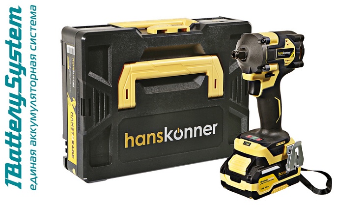 HCD20420BLC Гайковерт ударн б/щ Hanskonner,18В,1BatterySystem,420Нм,1/2", 2скор,1x4.0Ач,кейс HS