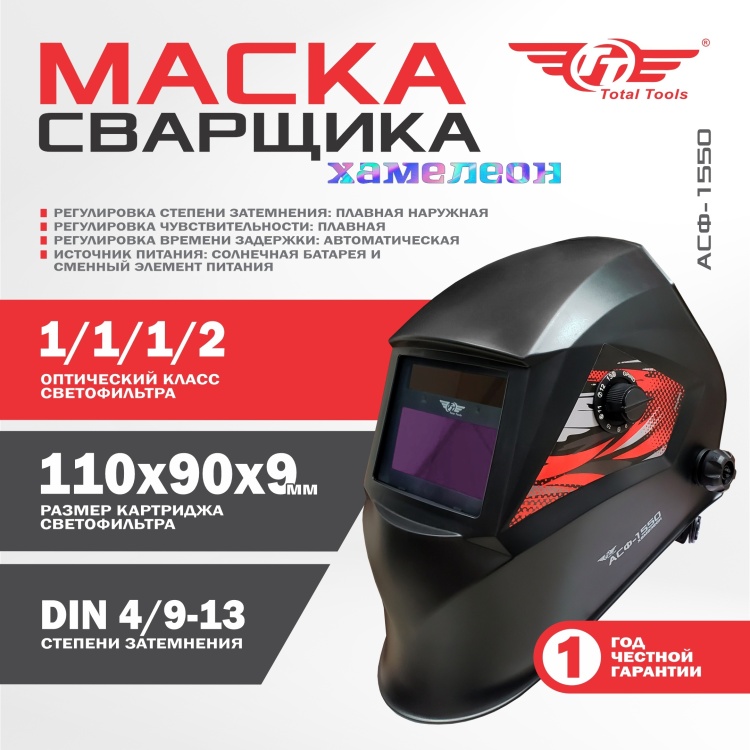 Маска сварщика Total Tools АСФ-1550 с автоматическим затемнением