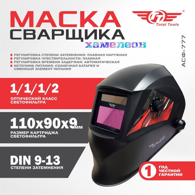 Маска сварщика Total Tools АСФ-777 с автоматическим затемнением