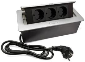 Настольный бокс на 3 розетки 26x12x7 см, шнур 1,5м, серебристый