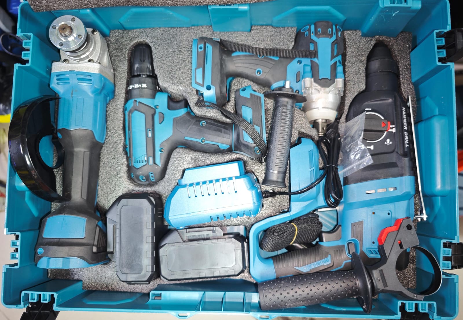 Набор 4 В 1 ПЕРФОРАТОР(BS) УШМ(BS) ГАЙКОВЕРТ(BS) ШУРУПОВЕРТ(щет) 2аккум 10бан. 1 станция TASKO