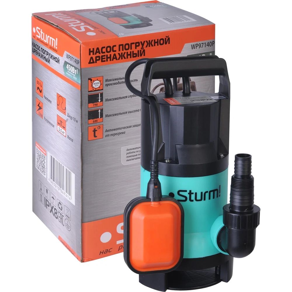 WP97140P Насос погружной дренажный ДЛЯ ГРЯЗНОЙ ВОДЫ 450Вт,ЧАСТ.ДО 35ММ,142л/мин,напор 6м,Sturm!