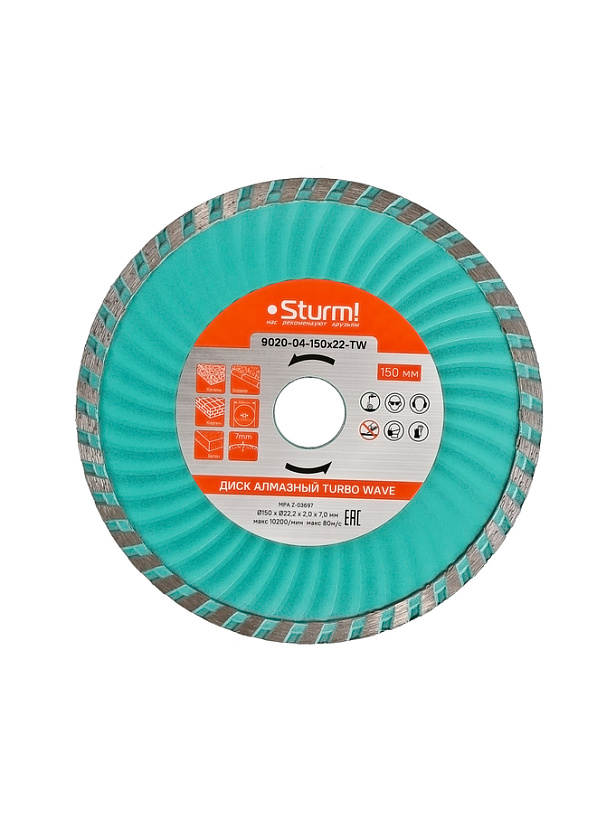 9020-04-150x22-TW Алмазный диск, сухая/влажная резка Turbo Wave 150мм Sturm!