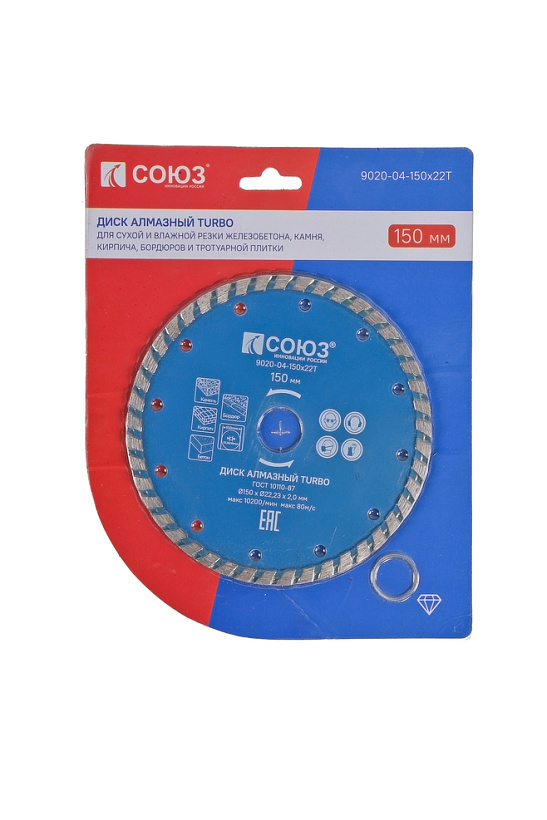 9020-04-150x22T алмазный диск TURBO, 150х22,2, Союз