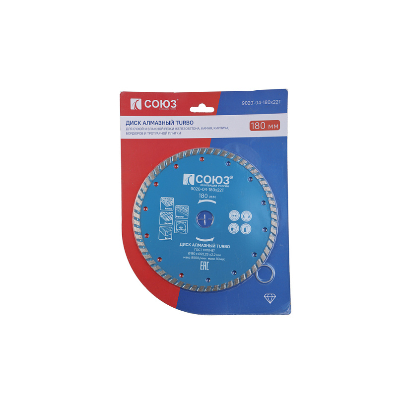 9020-04-180x22T алмазный диск TURBO, 180х22,2, Союз