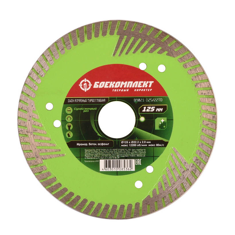 B9021-125-22TD Алмазный диск 125x22,23 ТУРБО ГЛУБИНА, сухой рез, БОЕКОМПЛЕКТ