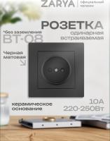 Розетка ВТ-08 одинарная б/з Заря черный soft-touch