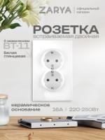 Розетка ВТ-11 двойная с/з Заря белый глянцевый