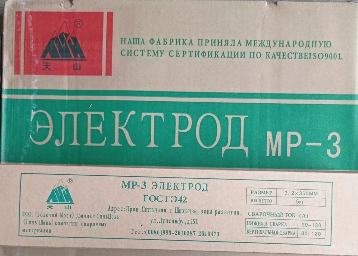 Электроды Тянь-Шань МР-3 3.2мм - предназначены для ручной дуговой сварки стальных конструкций переменным или постоянным током. Данные электроды могут применяться как в быту, так и для сварки ответственных конструкций из углеродистой стали.