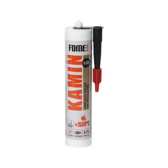 Жаростойкий герметик FOME FLEX Kamin (1500 градусов; черный; 300 мл) 01-4-2-007 используют при монтаже печного оборудования для герметизации отверстий, трещин и выемок между элементами конструкции, уплотнения стыков, склеивания огнеупорных кирпичей в отопительных установках и открытых каминах.
