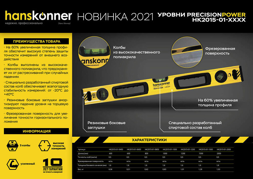 Специально разработанный спиртовой состав колб обеспечивает всепогодную стабильность измерений: от -20°С до +40°С. Ручки для удобной переноски инструмента.