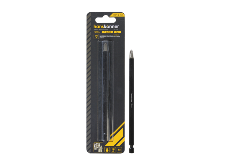 HKPH2-150 Бита PH2x150мм, сталь S2, Diamond, 1шт,Hanskonner