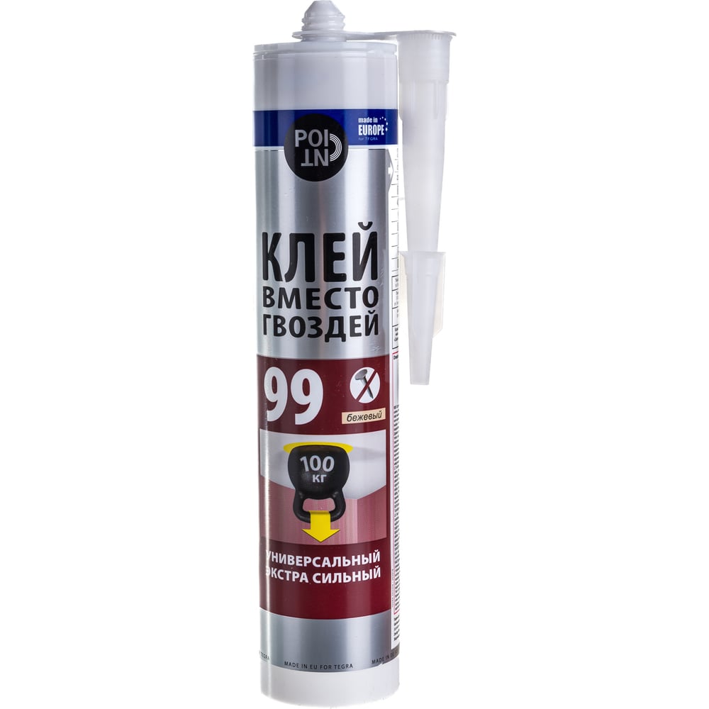 Клей вместо гвоздей POINT 99, экстра сильный, 280 мл 03-1-0-099 используют во время монтажных и отделочных работ для приклеивания планок, панелей, кессонов, розеток, карнизов, термических и акустических изоляционных материалов.