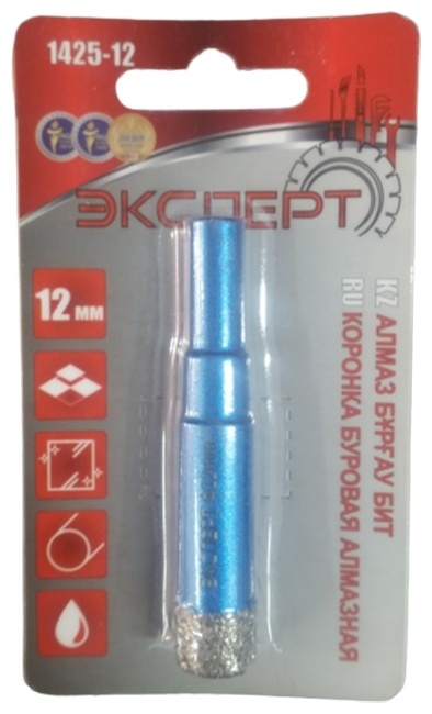 Коронка буровая алмазная ЭКСПЕРТ по стеклу и керамической плитке, цилиндр.хвостовик, 12х50мм,1425-12