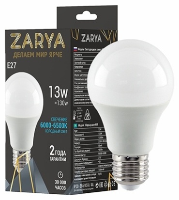 Лампа светодиодная Заря A60 A3 13W E27 6500K (станд)