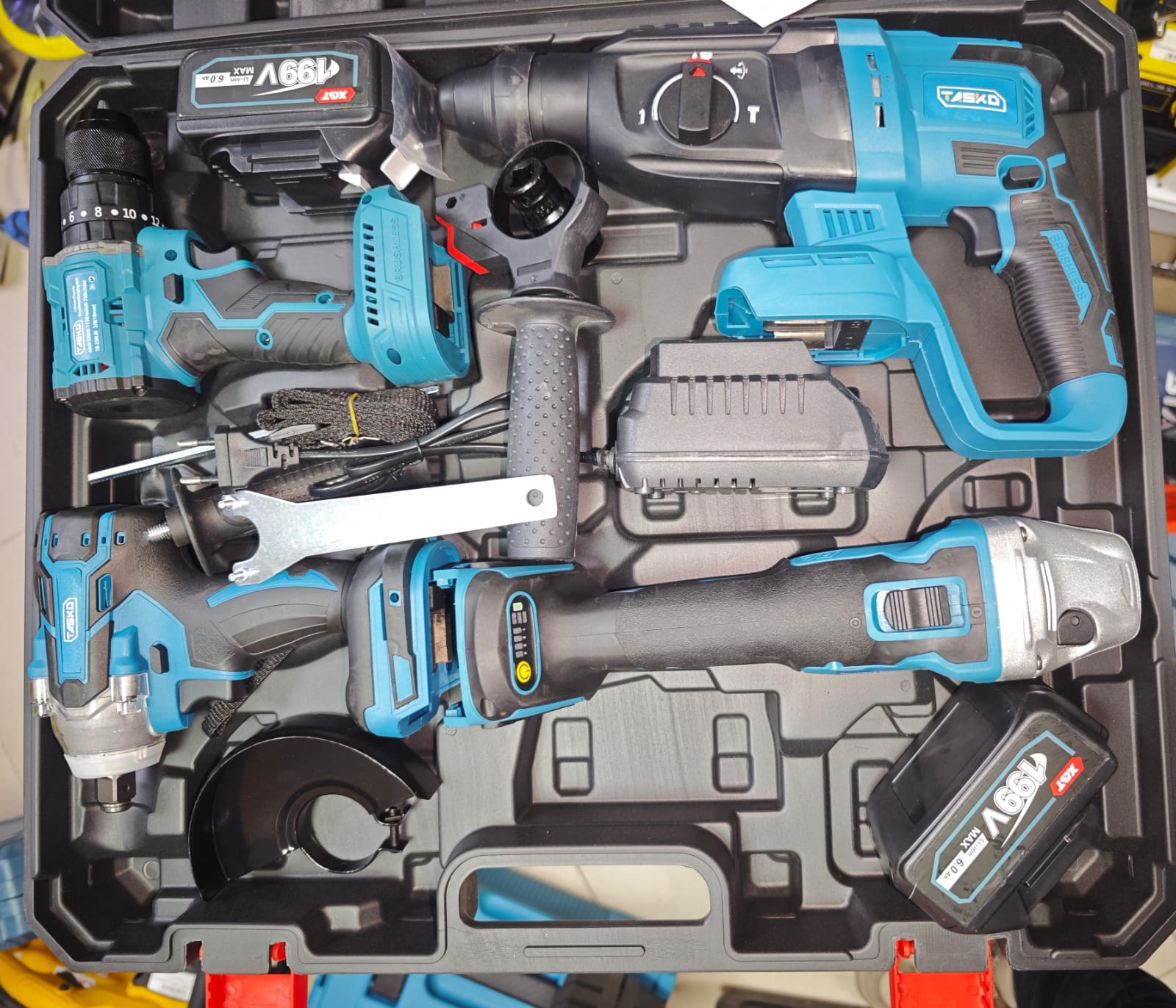 Набор 4 В 1 ПЕРФОРАТОР(BS) УШМ(BS) ГАЙКОВЕРТ(BS) ШУРУПОВЕРТ(BS) 2аккум 10бан. 1 станция TASKO