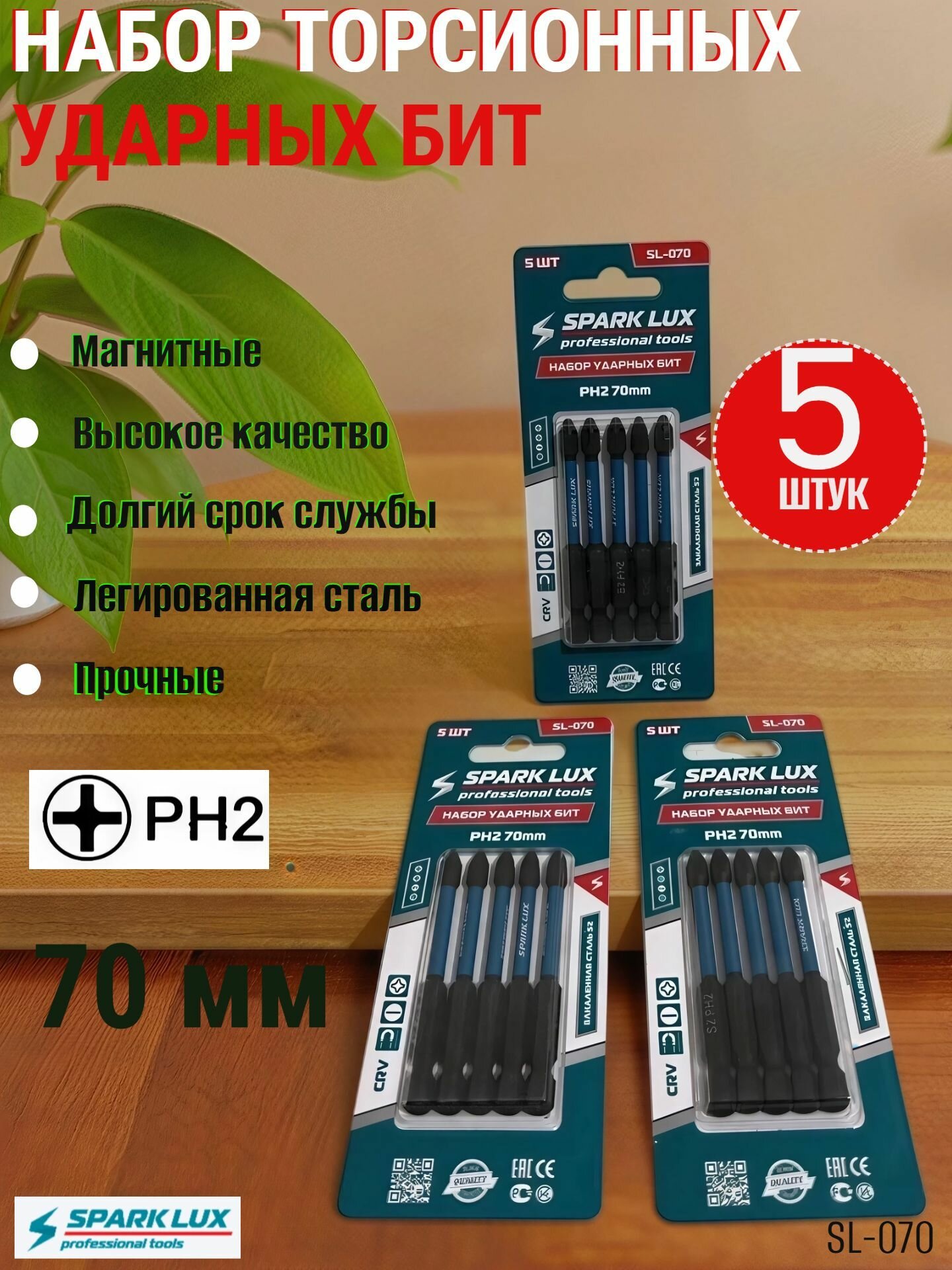 Набор бит Spark Lux SL-070, торсионные, ударные, PH2, 70мм, 5шт