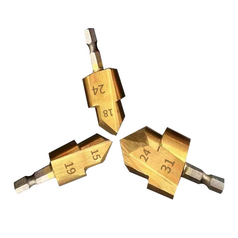Набор ступенчатых сверл для полипропиленовых труб 15-19мм, 18-24 мм, 24-31мм, шестигранный хвостовик