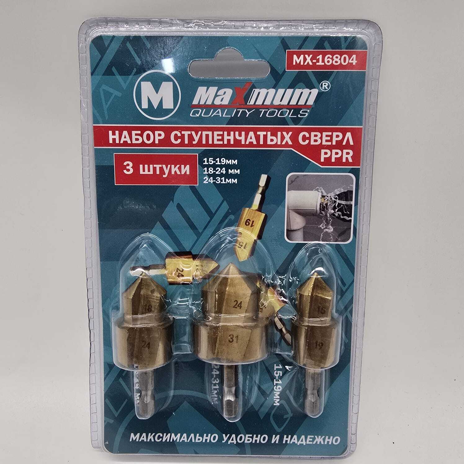 Набор ступенчатых сверл PPR, 15-19мм, 18-24 мм, 24-31мм, "MAXIMUM" MX 16804