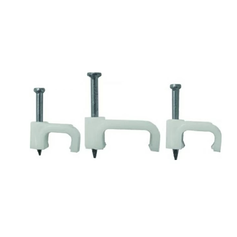 Скобы UNIT - это незаменимый элемент при монтажных работах, с их помощью быстро и надёжно фиксируется круглый и плоский кабель. Скобы легко крепятся к дереву, прессованному картону, швам кирпичной кладки, к штукатурке, бетону и кирпичу. Скобы UNIT изготавливаются из гибкого негорючего ударопрочного полипропилена, гвоздь - закалённая оцинкованная сталь. Размер: 8 мм. Цвет: белый.