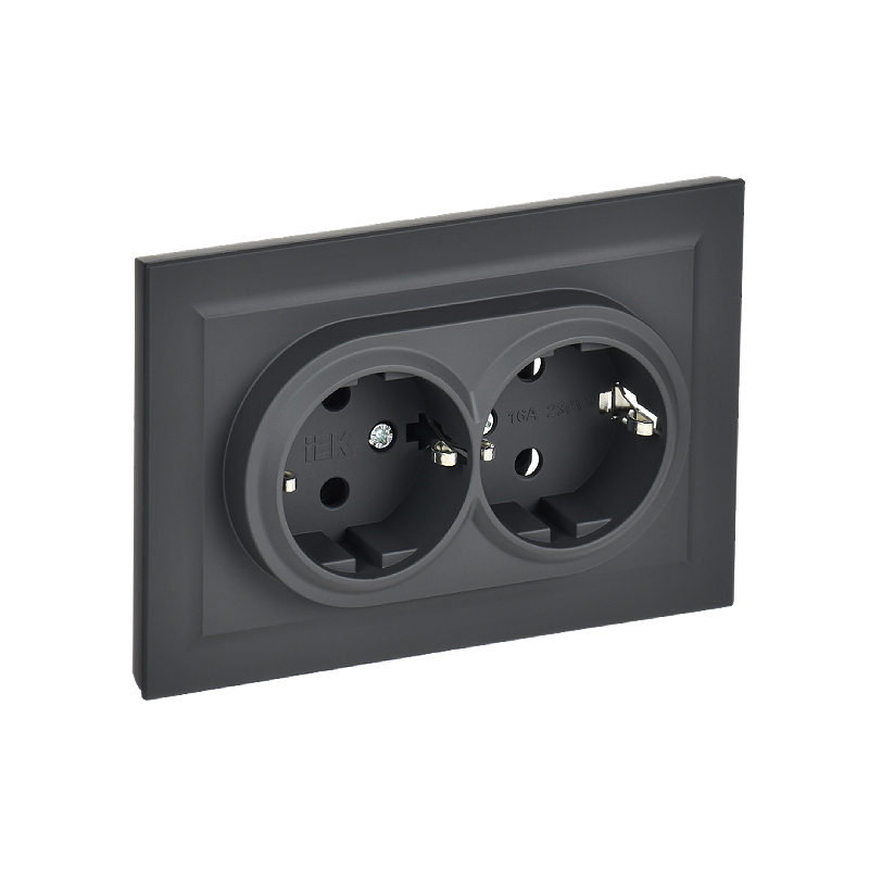 Розетка 2-местная с з/к без з/ш 16А в сборе IEK "BRITE" РС12-3-БрГ графит
