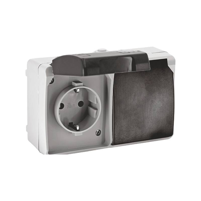 Розетка 2-ная о/у с з/к серый IP54 ROCK UNIT