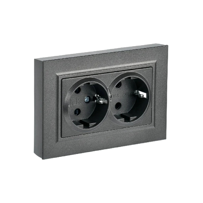 Розетка 2-ная с з/к без з/ш 16А в сборе IEK "BRITE" РС12-3-БрТБ темная бронза