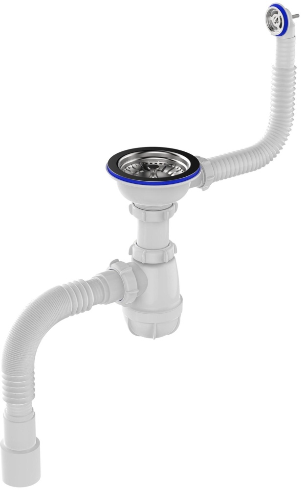 Сифон бутылочного типа от бренда Aquant, подходит для кухонных моек с диаметром сливного отверстия 90 мм. Выпуск 3 1/2" - разборный, с металлическими решетками 113 мм и ситечком 78 мм в комплекте с трубкой и круглым переливом с решеткой из нержавеющей стали. Корпус сифона увеличенный, для достижения максимальной проточности и поддержания оптимального уровня гидрозатвора с высотой 55мм. Идет в комплекте с гофротрубой с универсальным выходом под два диаметра 40/50мм для подключения к канализации. Сифон прост в установке, позволяет прочистить его в случае засорения без демонтажа и способен улавливать мелкие предметы. Внутренняя поверхность стакана сифона с зеркальной полировкой обеспечивает улучшенную проточность. Все пластиковые детали сифона производятся из первичного полипропилена, прокладки изготовлены из высококачественных пластикатов и обеспечивают длительный срок службы и высокую ремонтопригодность. Сифон выдерживает перепад температур от +5 до +80 градусов.