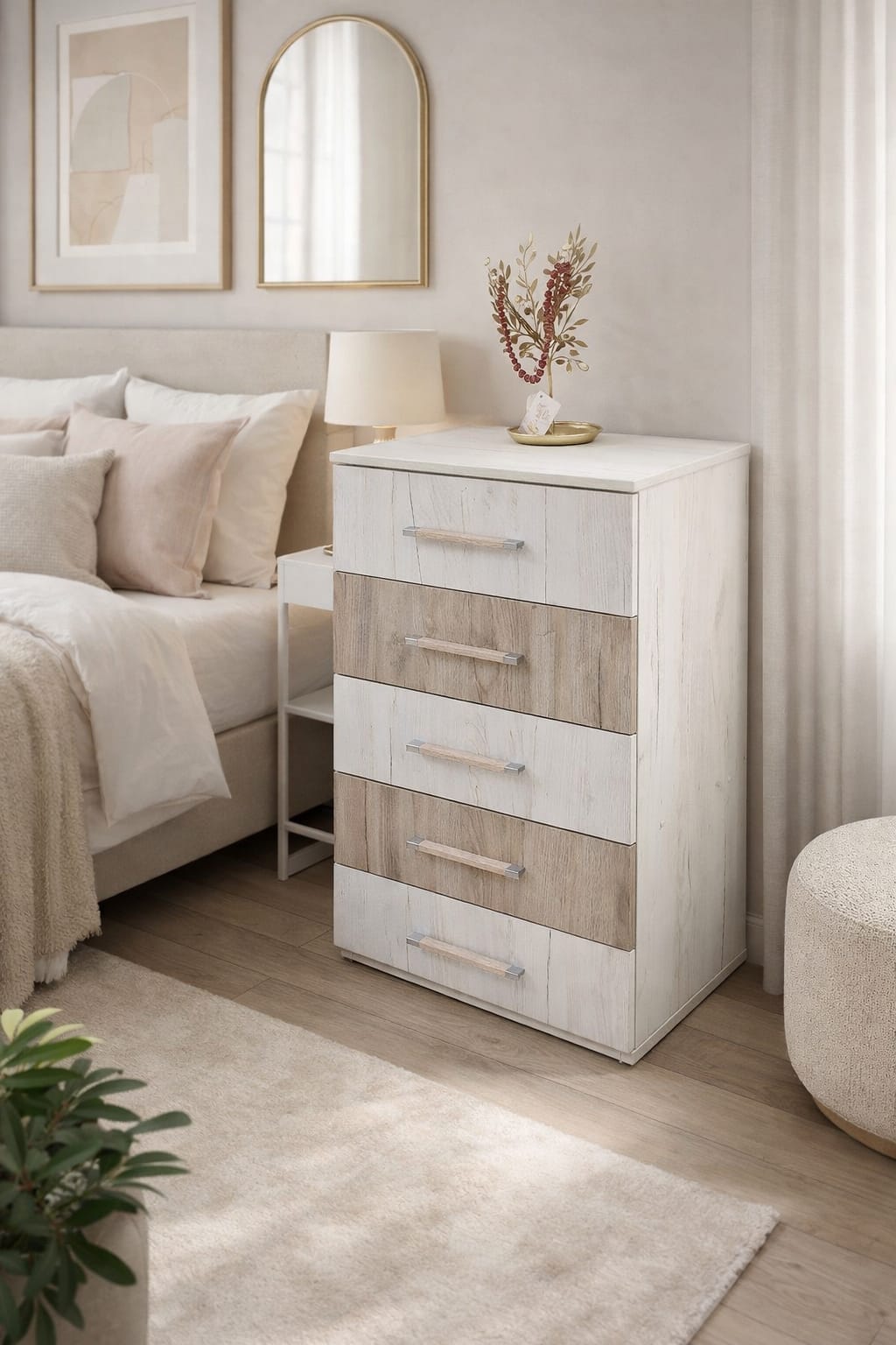 Спальный гарнитур Best комод 5 ящиков дуб крафт белый, дуб крафт серый