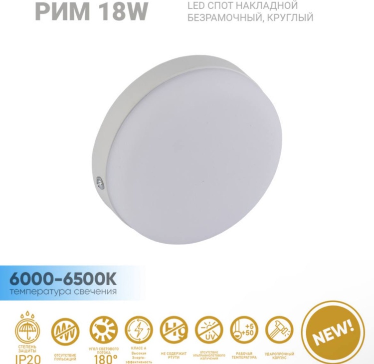 Спот накладной безрамочный круглый Рим 18W 6000-6500K