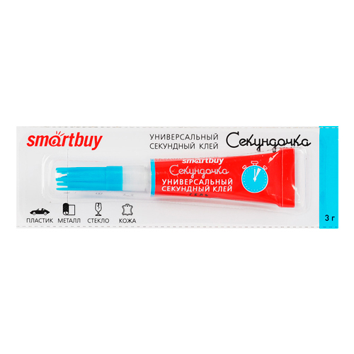 Супер клей Smartbuy используют для быстрого склеивания таких материалов, как фарфор, керамика, дерево, кожа, резина, металл, пробка, картон и большинство пластиков. Склеивание осуществляется всего за 5 секунд.