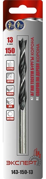 Сверло по дереву ЭКСПЕРТ "КОРОНА" спиральное с М-образной заточкой, парооксид., 150х13мм, 143-150-13