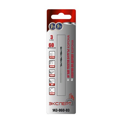 Сверло по дереву ЭКСПЕРТ "КОРОНА" спиральное с М-образной заточкой, парооксид., 60х3мм, 143-060-03