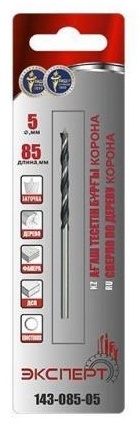 Сверло по дереву ЭКСПЕРТ "КОРОНА" спиральное с М-образной заточкой, парооксид., 85х5мм, 143-085-05