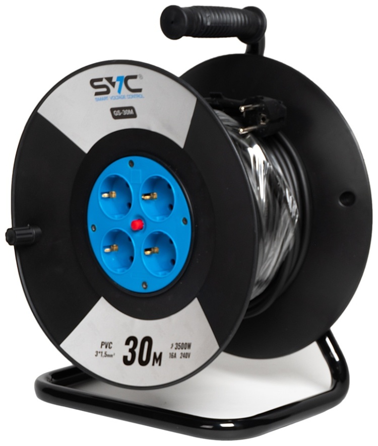 Удлинитель на катушке SVC, GS-30M, 4 розетки, 30 метров, 3500W, 240В, 16A, 3x1.5mm², чёрный