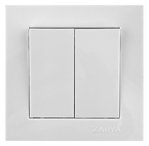 Выключатель ВТ-02 2-х клавишный Заря белый глянцевый